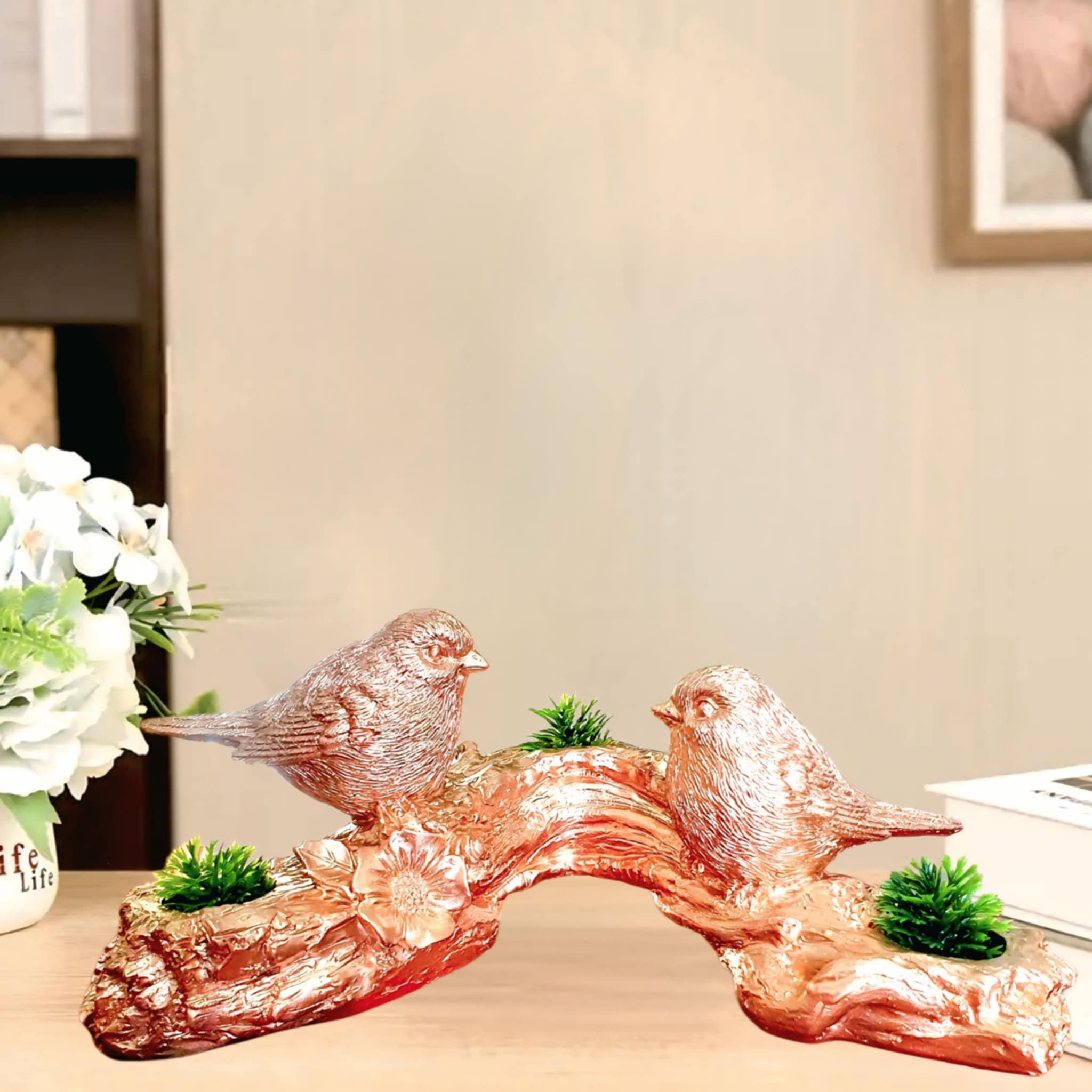 Feita em resina a peça captura a beleza e graciosidade dos pássaros, tornando-a uma excelente escolha para amantes de animais e da natureza. O design delicado e original é uma ótima maneira de expressar estilo e personalidade em sua casa ou escritório, proporcionando um ambiente acolhedor e convidativo.