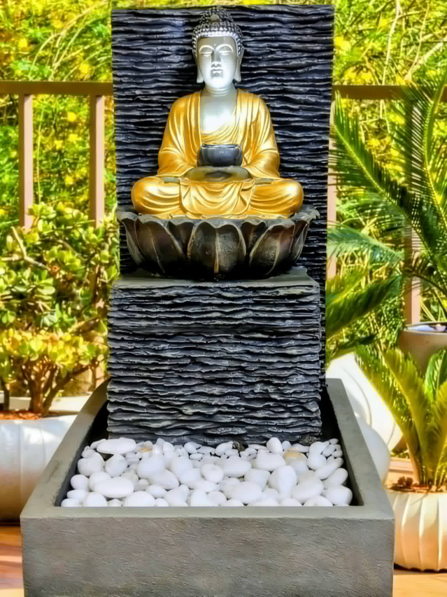 Transforme seu espaço com a Fonte de Água de Buda Cascata Pedra Com um design elegante e harmonioso, esta fonte é perfeita para criar um ambiente relaxante e equilibrado, ideal para práticas de Feng Shui. Sua altura de 65cm
