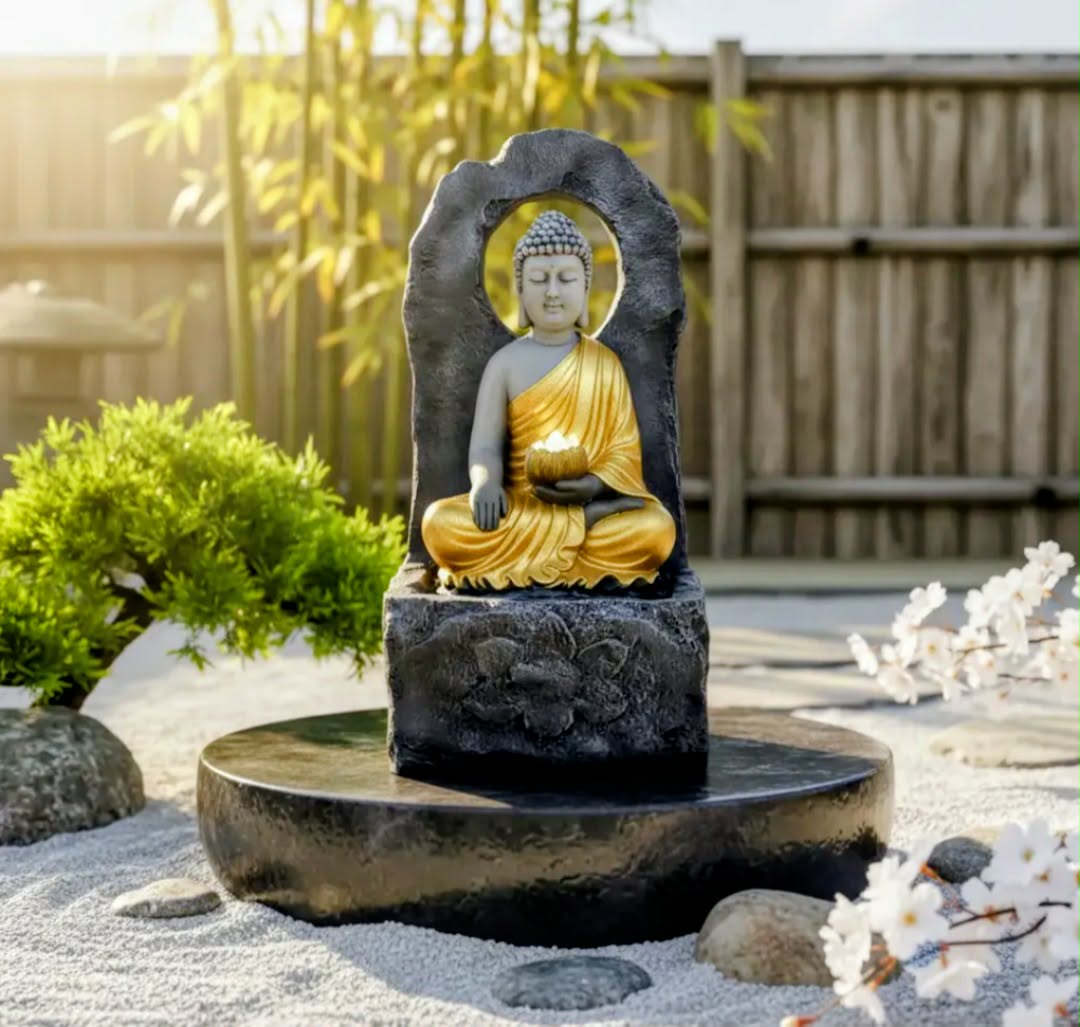 Fonte De Água Buda Ouro Pedra Jardim 60cm