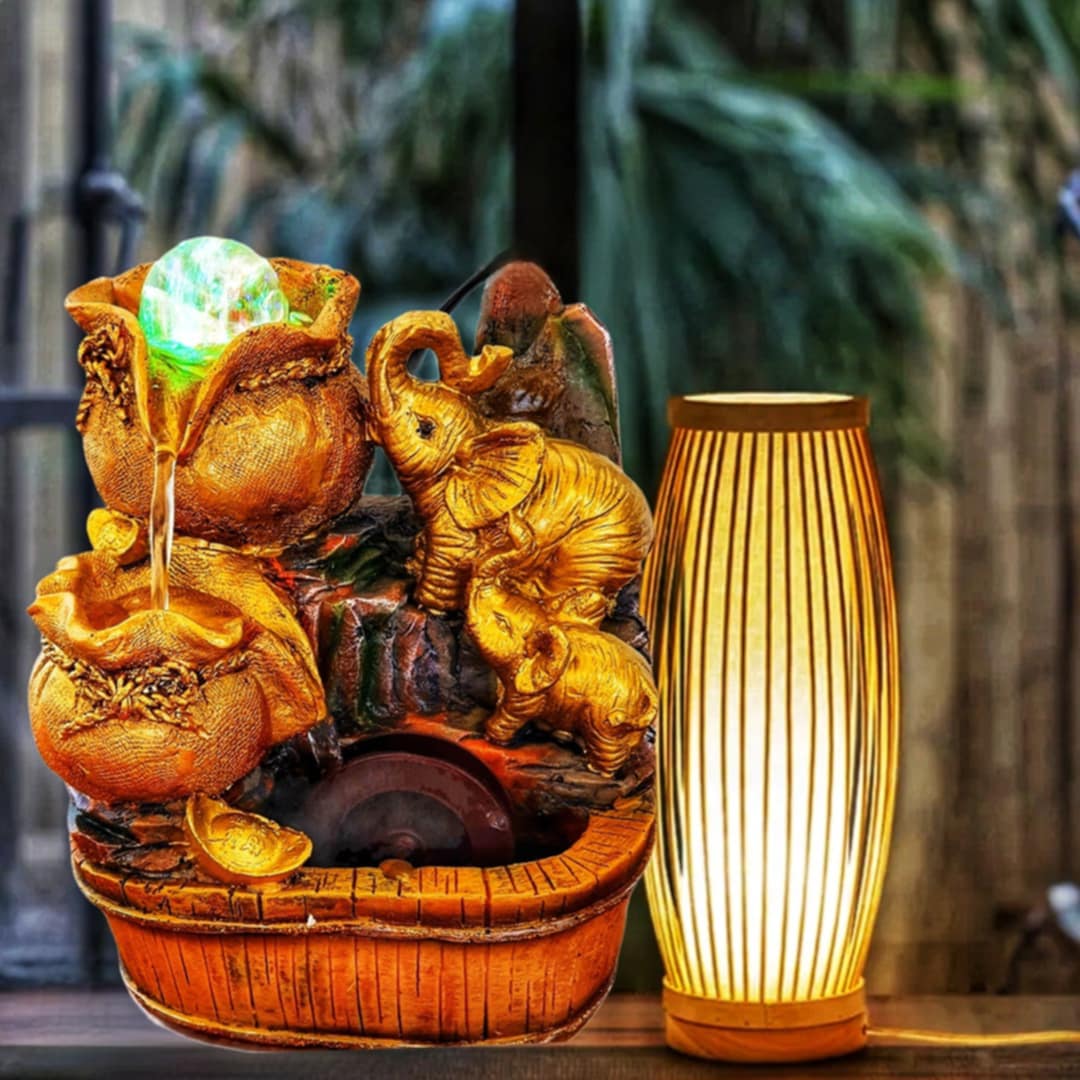 Transforme o ambiente da sua casa com a Fonte de Água Prosperidade Elefante Dourado Moeda da Sorte, com um design elegante e sofisticado, essa fonte combina perfeitamente elementos de riqueza e boa sorte, sendo um atrativo tanto para decoração quanto para a promoção de energia positiva. O elefante, símbolo de prosperidade, traz consigo a esperança de um futuro próspero.